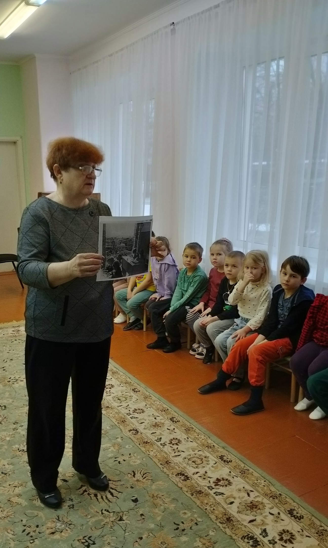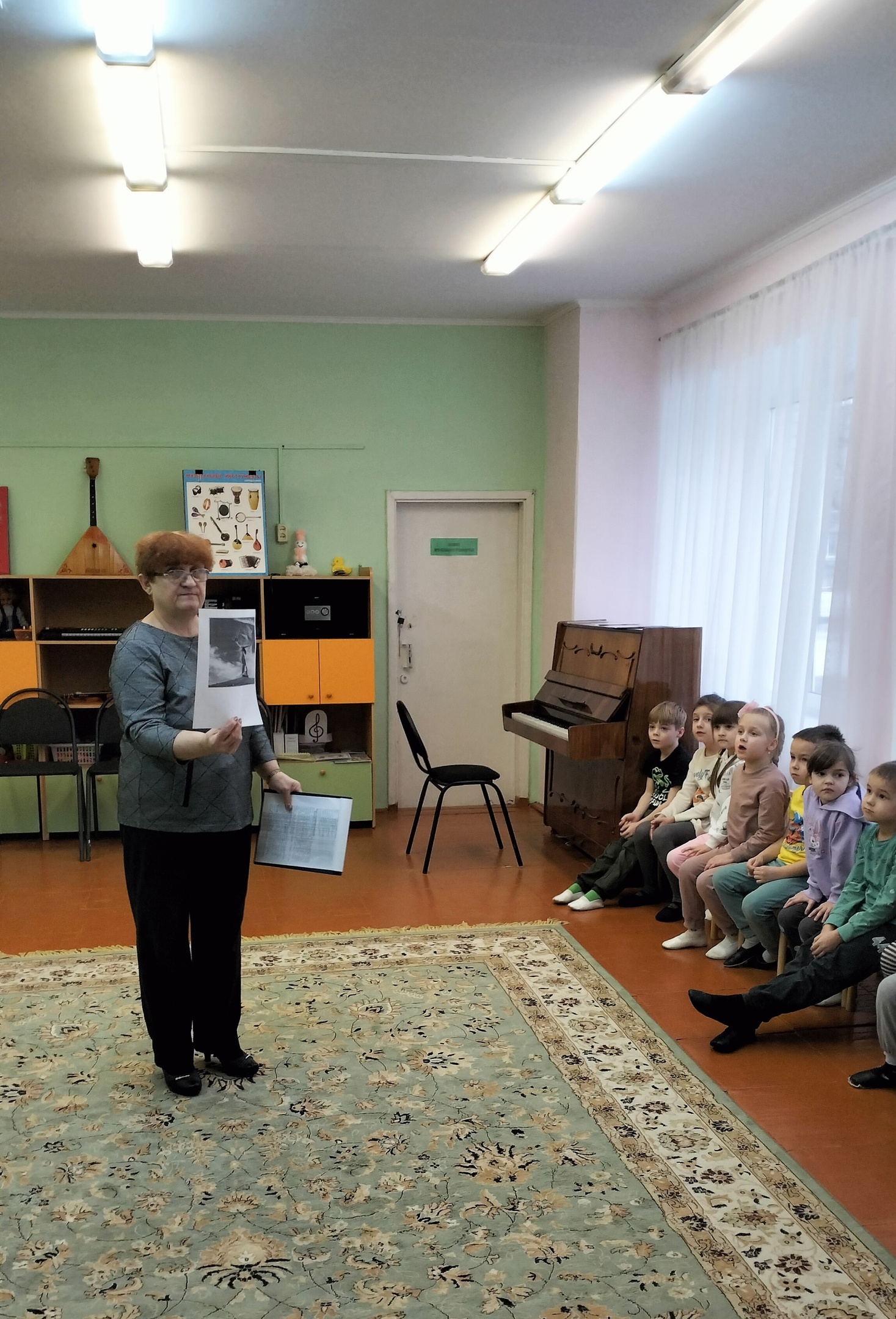 Музыкальным руководителем Кузнецовой Екатериной Савельевной с ребятами была проведена беседа на тему "Легендарный Сталинград", рассмотрены фотографии Сталинграда в годы войны. Примером отваги и мужества стал для ребят рассказ о защитниках знаменитого "Дома Павлова", которые держали оборону и не дали врагу захватить его. Также они узнали, что в память о Сталинградской битве в городе Волгограде есть много памятников и один из самых известных из них - "Родина Мать". Кроме того, обучающиеся приняли участие в спортивно - игровой программе.